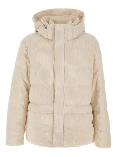 cream corduroy effect quilted removable hood concealed front zip closure knitted collar