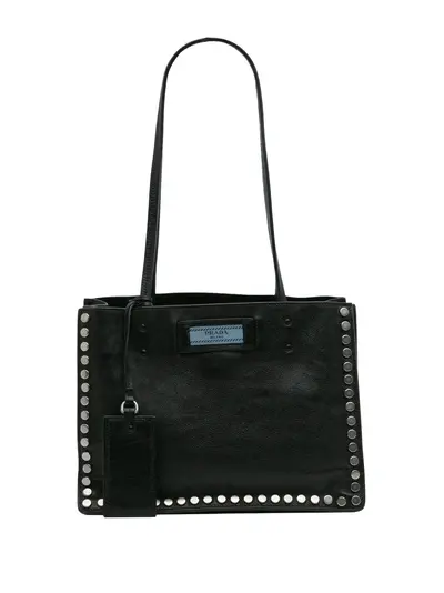 studded leather body flat leather straps open top interior zip and slip compartments black Inclusions: authenticity card, name tag. Condition: GOOD. This previously owned and used item is in good condition with minimal signs of use. This may include fading of material or plating and scratches. Please refer to the photos on this product page for a detailed view of the item, including any damages declared.