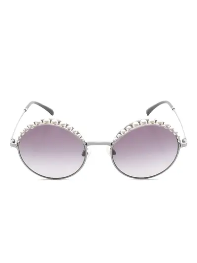 1986-1988 silver-tone round frame gradient lenses pearl embellishment nose pads These glasses come with a protective case. Condition: GOOD. This previously owned and used item is in good condition with minimal signs of use. This may include fading of material or plating and scratches.