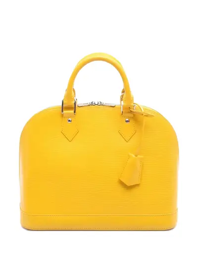 2012 yellow leather top rolled handles zip top fastening internal slip pocket silver-tone hardware Condition: GOOD. This previously owned and used item is in good condition with minimal signs of use. This may include fading of material or plating and scratches.