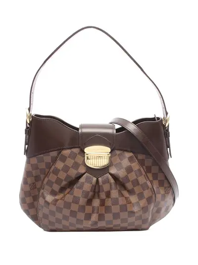 damier canvas body with leather trim flat leather strap front strap with push lock closure zip closure interior slip pockets brown Serial Number: AH0122 This item has no inclusions. Condition: EXCELLENT. This previously owned item is in near-perfect condition with no signs of damage or use. Due to the exclusivity of this item and its limited availability, processing and delivery might take longer than usual. Please refer to the photos on this product page for a detailed view of the item, including any damages declared.
