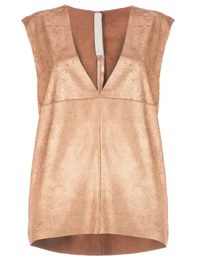 Pink metallic-tone sleeveless leather top from Drome featuring a deep V neck, a concealed zip at the back and a loose fit.