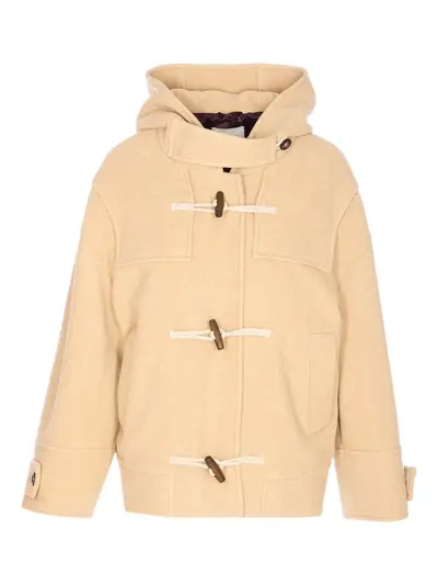 beige hood toggle fastening long sleeves pockets buttoned cuffs