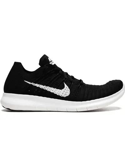 Black and white Free RN Flyknit sneakers from Nike featuring a round toe, a lace-up front fastening, a brand embossed tongue, a branded insole, a slip-on style and a rubber sole. These styles are supplied by a premium sneaker marketplace. Stocking only the most sought-after footwear, they source and curate some of the most hard to find sneakers from around the world.