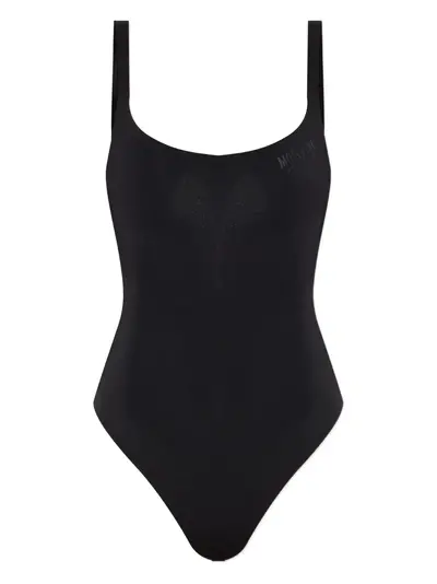 black logo detail square neck sleeveless thong cut Just a reminder that this piece must be tried on over your own garments.