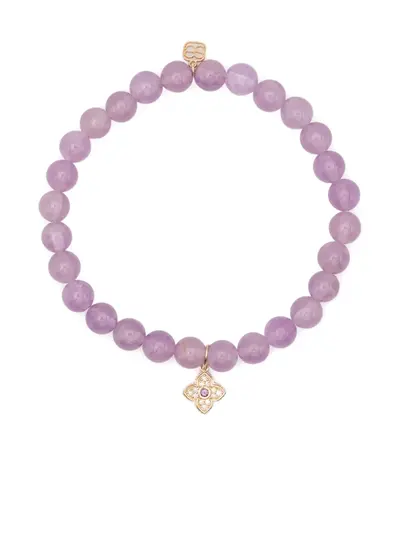purple 14K yellow gold amethyst gemstone beads pavé-set round-cut diamonds charm detail slip-on style Normal everyday use and external agents may reduce the lustre of gemstones and gold surfaces. To maintain, use specific, non-abrasive products specially meant for cleaning jewellery.