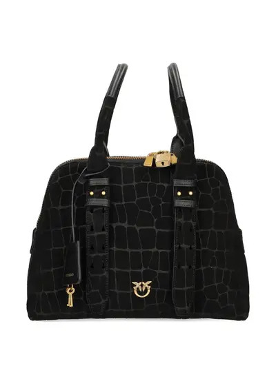 black crocodile effect top zip fastening top handles gold-tone hardware padlock detail