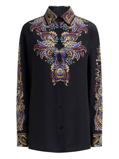 black paisley print button fastening long sleeves buttoned cuffs pointed collar