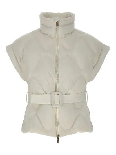 ivory quilted stand-up collar two-way zip closure side pockets belt