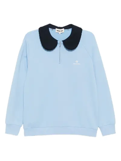 sky blue half front zip fastening detachable collar long sleeves ribbed cuffs and hem