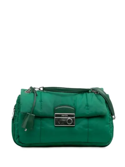 nylon body chain strap with leather guard front flap with metal lock closure exterior back slip pocket exterior bottom zip compartment interior zip and slip pockets green Inclusions: key, charm. Condition: GOOD. This previously owned and used item is in good condition with minimal signs of use. This may include fading of material or plating and scratches. Declared Damages: Interior Pocket Feature(s) Moderate Stains. Please refer to the photos on this product page for a detailed view of the item, including any damages declared.