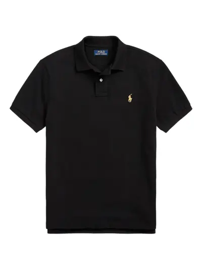 black cotton short sleeves polo collar front button placket signature Polo Pony motif