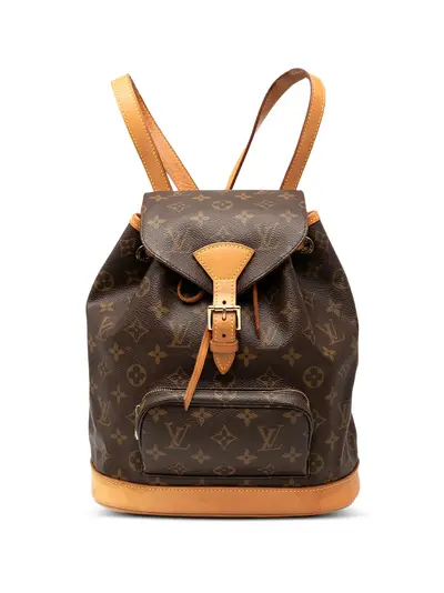 monogram canvas body with vachetta leather trim flat vachetta leather back straps front flap with a belt buckle detail open top with a drawstring closure exterior front zip pocket interior slip pocket brown Serial Number: SP1929 Inclusions: dust bag. Condition: GOOD. This previously owned and used item is in good condition with minimal signs of use. This may include fading of material or plating and scratches. Declared Damages: Practical Attachment Feature(s) Moderate Rust/Tarnish. Please refer to the photos on this product page for a detailed view of the item, including any damages declared.