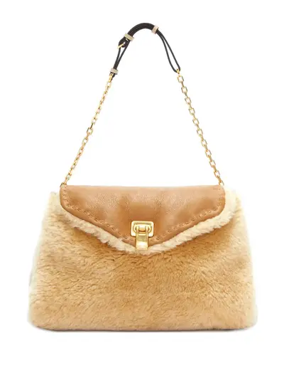 beige gold-tone hardware chain-link shoulder strap top flap twist-lock fastening top handle