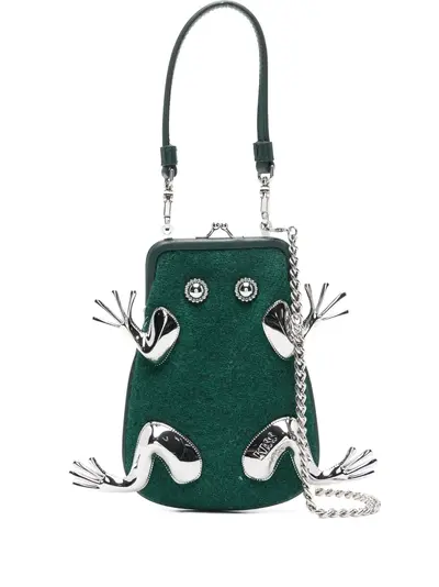 green frog detail detachable top handle chain-link shoulder strap Orb logo frame purse