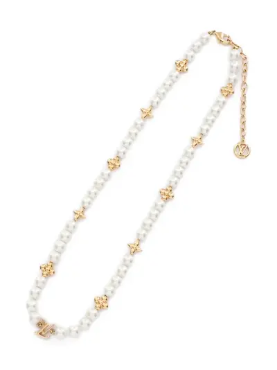 2025 gold artificial pearl embellishment logo charm lobster clasp fastening adjustable chain flower embellishments Condition: GOOD. This previously owned and used item is in good condition with minimal signs of use. This may include fading of material or plating and scratches.