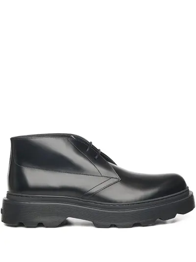 black calfskin upper rubber sole leather insole lace-up fastening lug sole