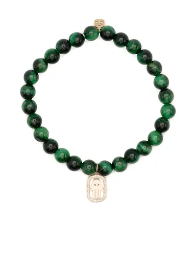 gold-tone 14k yellow gold bead chain Hamsa charm pavé-set round-cut diamonds Normal everyday use and external agents may reduce the lustre of gemstones and gold surfaces. To maintain, use specific, non-abrasive products specially meant for cleaning jewellery.