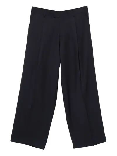 navy blue belt loop pleat detail concealed front fastening side seam pockets
