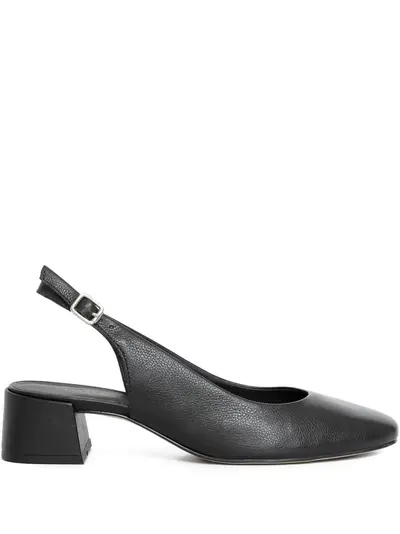 black slingback strap buckle fastening block heel round toe leather composition