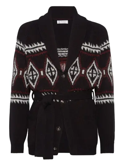 Brunello Cucinelli geometric-jacquard belted cardigan 32128465 (lpn31094526)