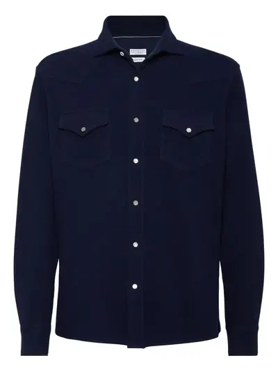 navy blue cashmere-cotton blend snap fastening two chest pockets pointed collar long sleeves