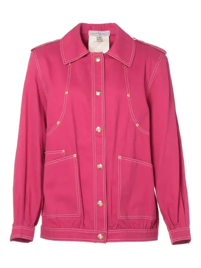 1990s pink Horse Carriage buttons topstitch detailing front pockets buttoned cuffs shoulder epaulettes front button fastening