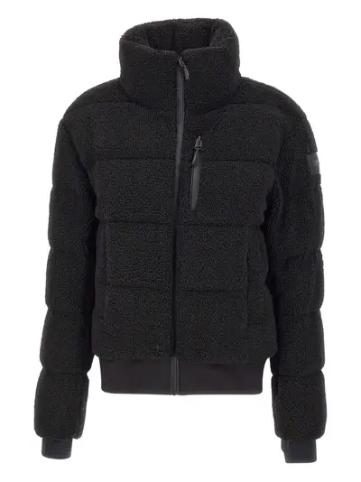 black teddy effect front zip closure side zip pockets ribbed hem tucked-in cuffs