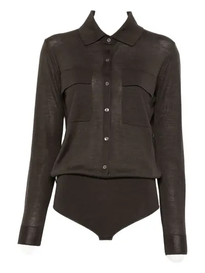 brown front button fastening press stud fastening chest flap pockets Just a reminder that this piece must be tried on over your own garments.