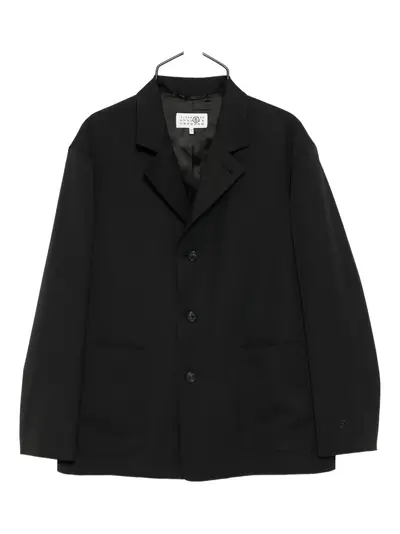 black front button fastening two side patch pockets embroidered logo at the sleeve long sleeves