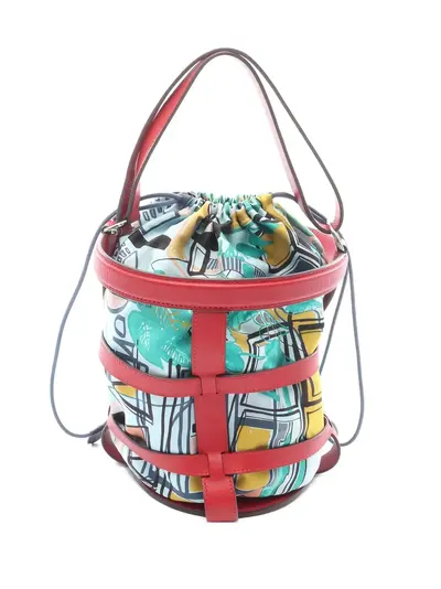 red and multicolour leather straps drawstring fastening silver-tone hardware Condition: GOOD. This previously owned and used item is in good condition with minimal signs of use. This may include fading of material or plating and scratches.