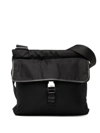 nylon body adjustable flat shoulder strap top zip closure exterior slip pocket with flap interior zip pocket black This item has no inclusions. Condition: GOOD. This previously owned and used item is in good condition with minimal signs of use. This may include fading of material or plating and scratches. Please refer to the photos on this product page for a detailed view of the item, including any damages declared.