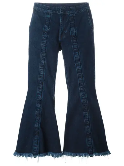 Indigo blue cotton frayed hem flared jeans from Marques Almeida.