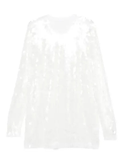 white long sleeves crew neck thigh length sequin embellishment straight hem