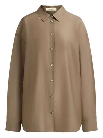 brown classic collar mother-of-pearl buttons long sleeves buttoned cuffs relaxed fit