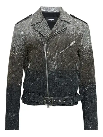 black crystal embellished zip fastening belt epaulettes zipped pocket