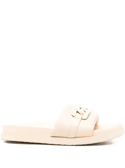 beige chain detailing open toe slip-on style flat rubber sole