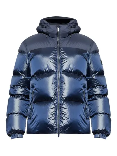 blue hooded zip fastening long sleeves elasticated cuffs padded design