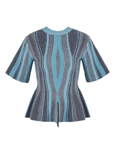 grey and blue short sleeve crew neck peplum hem