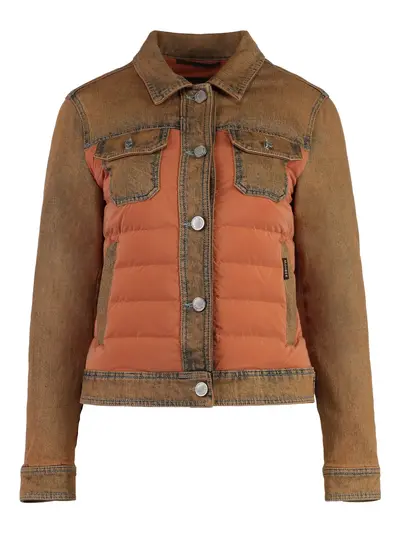 orange down padding buttoned flap-pockets welt pockets denim panel quilted effect