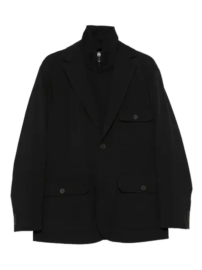 black button fastening zip fastening buttoned cuffs notched lapels multiple pockets padded detachable lining