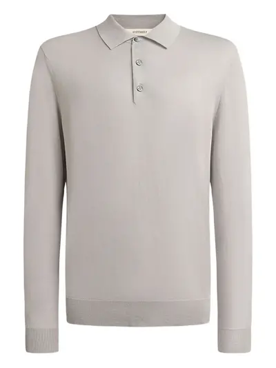 light grey button fastening long sleeves polo collar ribbed hem ribbed cuffs