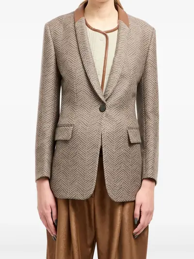 beige virgin wool-cashmere blend lamb-skin collar detail button fastening front flap pockets long sleeve