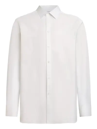 white cotton button fastening long sleeves buttoned cuffs classic collar