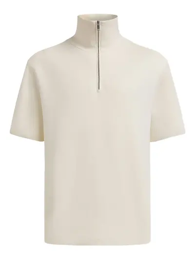 off-white polo neck short sleeves zip fastening ribbed hem cotton