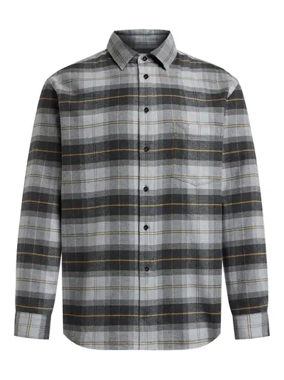 grey checked pattern button fastening chest pocket long sleeves buttoned cuffs
