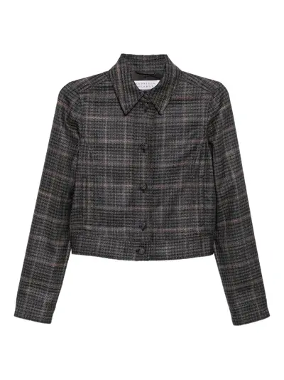 charcoal grey front button fastening buttoned-cuff sleeves straight hem