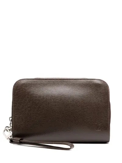 taiga leather body leather wristlet top zip closure interior slip pockets brown Serial Number: VI0065 This item has no inclusions. Condition: EXCELLENT. This previously owned item is in near-perfect condition with no signs of damage or use. Please refer to the photos on this product page for a detailed view of the item, including any damages declared.