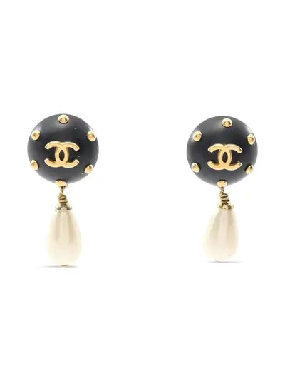 Chanel Pre-Owned 1986-1988 logo faux-pearl clip-on earrings 32449469 (lpn31095547)