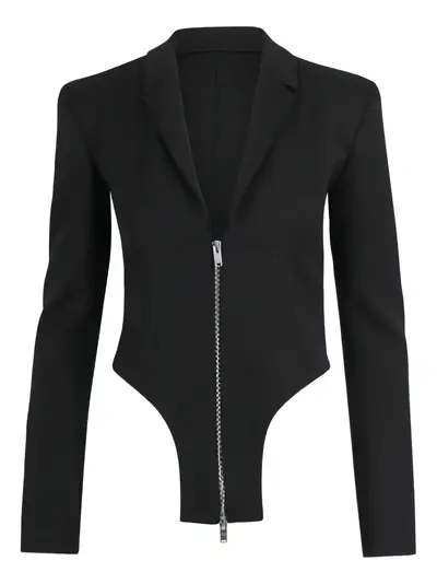 black zip fastening long sleeves structured shoulders bodysuit-style